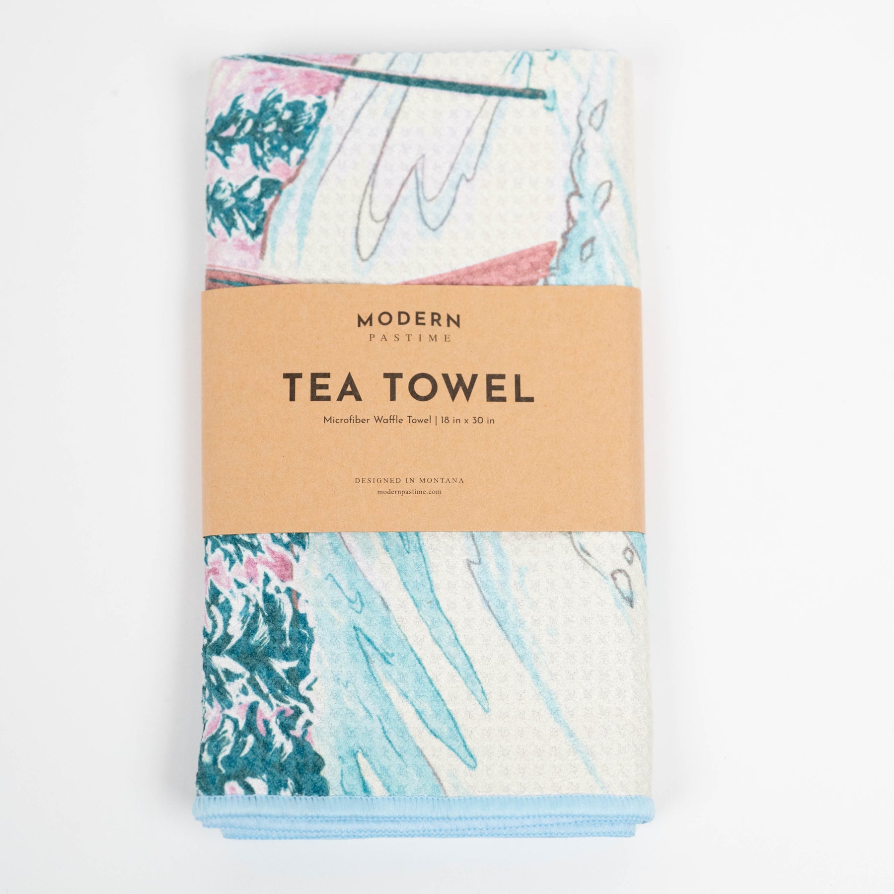 This 18"x30" microfiber waffle tea towel features the same vibrant floral pattern as its cream counterpart, but with a refreshing twist—a soft light blue background that brings a cool, airy feel to the design. The flowers in rich red, blue, navy, and green stand out beautifully against the pastel base, while a bold red border frames the towel, adding a striking pop of contrast. Made from ultra-absorbent, quick-drying waffle-weave microfiber, this towel blends everyday functionality with colorful, botanical style.